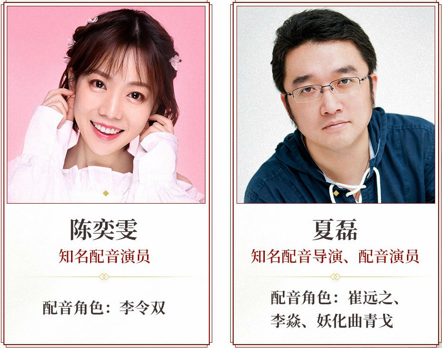 此前,【音熊联萌】的配音老师们已经在《古剑奇谭》系列作品里为我们奉献了许多精彩的声音表演。其中,夏磊老师除了在广播剧中一人分饰多角之外,还在《古剑奇谭网络版》中为“妙法长老清都”“仙灵·玉魄水精”等多个重要角色配音,而他在《古剑奇谭二》中饰演的“夏夷则”和《古剑奇谭三》中的“玄戈”也是深受玩家喜爱的经典角色;在本次广播剧中出演“太子”的沈达威老师同时也是《古剑奇谭网络版》中的“神机校尉乐天星”和《古剑奇谭三》中出身星工辰仪社的少年“凌星见”。