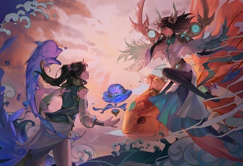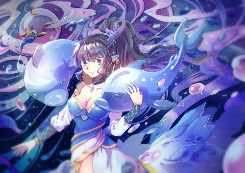 同样是逝水女神,这位在大触的笔下显得娇憨可爱,与海豚共舞嬉戏非常养眼。不过这两只海豚,你们眼睛往哪里看呢?