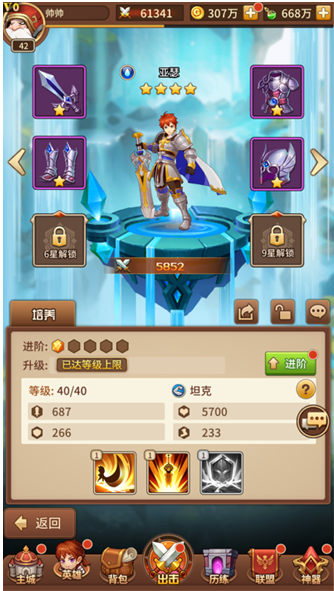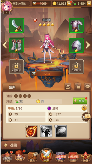 从创角开始,每位勇者将会获得第一位四星英雄!如果你是少年,你将成为传奇的少年亚瑟王;如果是少女,你将是来自魔法世界的烈焰法师凯瑟琳!
