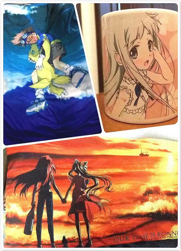 枕头印着的是 Air 观铃和晴子夕阳海滩前的背影;被子的正面是太一从蔚蓝的天空中掉落进数码宝贝的世界;篮球服必然也要收藏一件湘北的十号……
