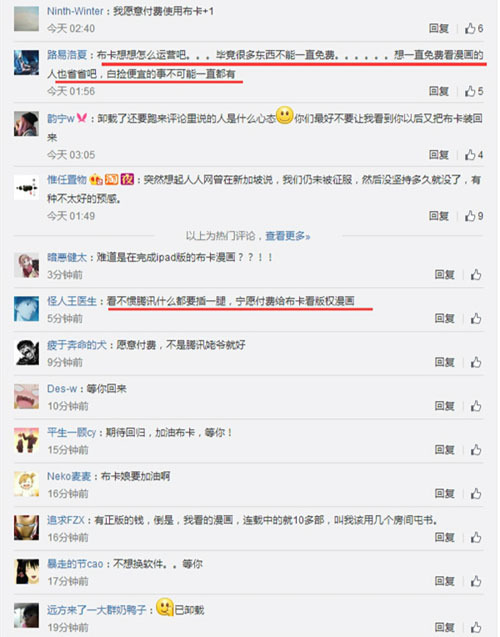 新一年新事物嘛?感觉一踏进2015年很多事情都在变化,当然有好也有坏。今日布卡漫画在官方微博发出了一条信息,该信息暗示该企业遭遇“变故”。该软件中原本免费阅读的漫画已经在布卡中下架,比如「海贼王」标记为“内容来自腾讯”,即使在布卡漫画APP中也需要打开网页阅读。网友猜测是因为其提供的漫画阅读内容引发了版权问题,未来可能引入付费阅读模式。但是不管结果如何,都会对该类软件的用户数量造成影响。更多人在感叹,免费的时代将要结束了么?!