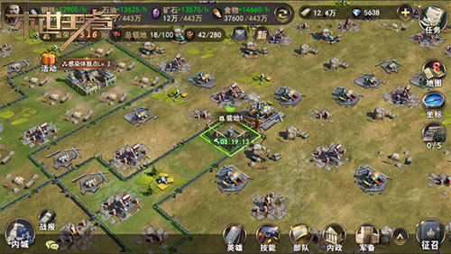 此外,在不同兵种征兵的时候也都有不同的资源需求。其中射手类英雄征兵会大量消耗钢铁;战士类需求食物;车队会需求石油。您需要随时根据自己主力阵容的兵种类型来调整占地策略,不然在战争状态下主力部队征兵极易出现某项资源不足的情况。