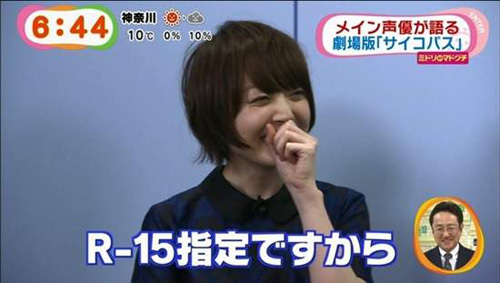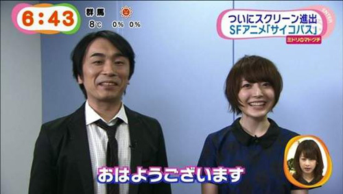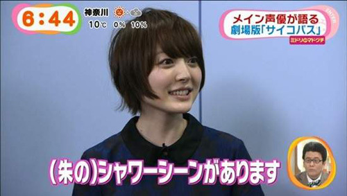 【M站 老南街 整理报道】「PSYCHO-PASS」剧场版即将与1月9日上映,而近日其宣传火力全开!不但在新宿设置PSYCHO-PASS测量区域,还有主题餐厅等活动。此外也少不了要请主要声优上电视宣传啦!今天两位主角的声优关智一和花泽香菜接受富士电视台的晨间节目闹钟电视访问,闹钟电视经常播出动画特集和介绍文化,所以这次是一个很好的宣传机会,在访问中关智一还惊爆,「PSYCHO-PASS」剧场版是因为小朱洗澡场景变成R15级的!