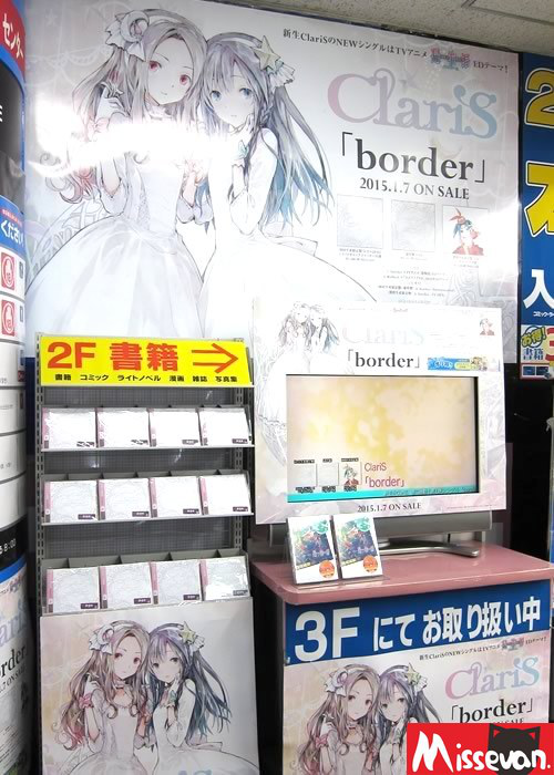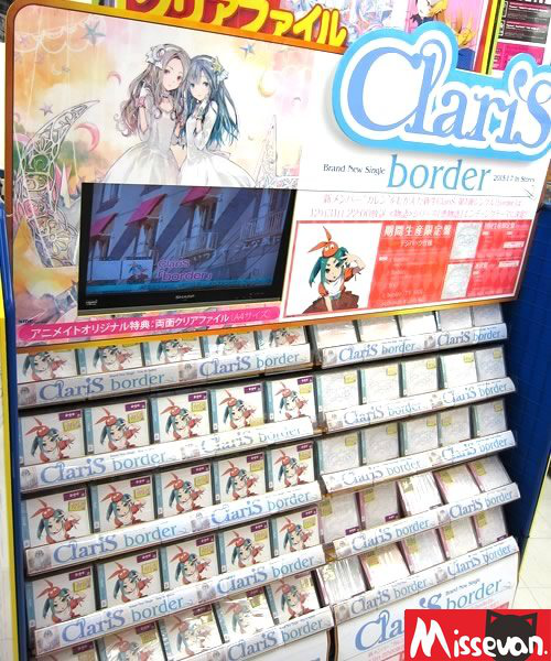 本月6日,Claris的单曲CD《border》(期间限量版/附赠DVD初回生产限量版/普通版)开始发售。该CD收录有动画《凭物语》的片尾主题歌。据产品消息报道,“(首售限量版)是为了欢迎新成员Karen举办的活动☆”。这应该是"新生"ClariS的首张单曲。