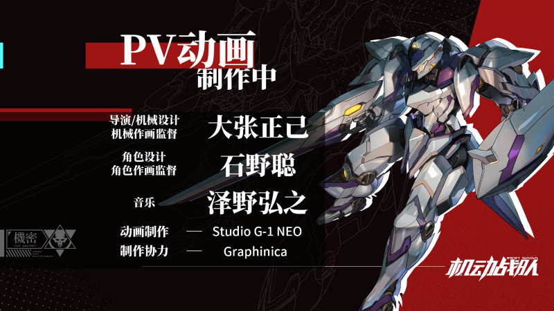 此外,由曾参与游戏机设的知名机械设计师大张正己,担当游戏配乐作曲的泽野弘之以及著名角色设计师石野聪参加制作的《机动战队》全新PV正在制作中,预计九月完成,敬请期待。