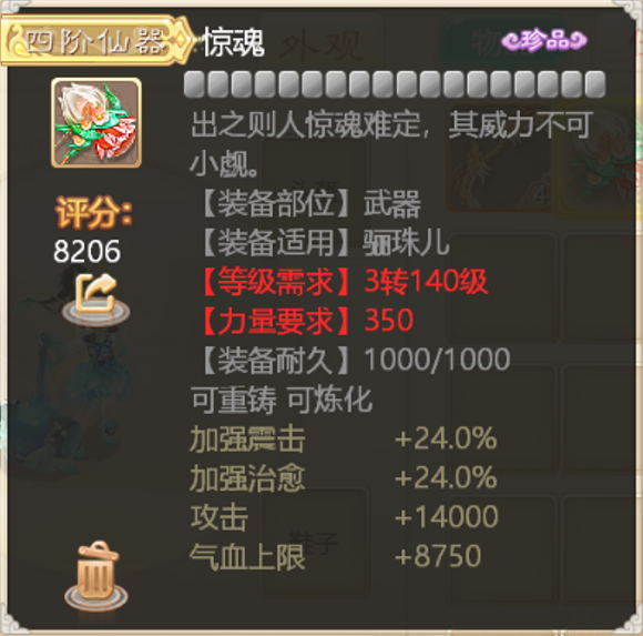 而仙器——惊魂的光效的酷炫程度也更上一层楼。不仅大锤呈现出炫目的粉红色光效,更有一只只蝴蝶随着电光火石缓缓飞舞,配合骊珠儿的角色外观,实在是少女心爆棚!