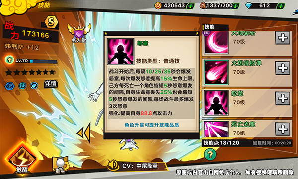 弗利萨的另一个特色,就是他的被动技能“怒意”,发动后能够提高自己的生命值上限,进一步强化生存能力。值得一提的是,在弗利萨觉醒后,怒意可以立即发动,而且在下一波战斗中也有概率发动,若战场上有超赛悟空、超赛贝吉塔这两个死对头的话,还能进一步提高发动概率,大幅加强其生存能力!这不得不让人联想到他在那美克星一战后凭着怨恨活了下来,最后回到地球进行复仇的情景。