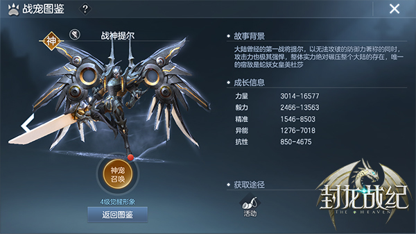 至尊战宠——战神提尔正式登场!魔幻大陆曾经的第一战将化身战宠为你披荆斩棘,助你成为新一届战斗王者!4级超凡觉醒让你亲身感受第一战将的强大,赶快去版本活动中领取吧!