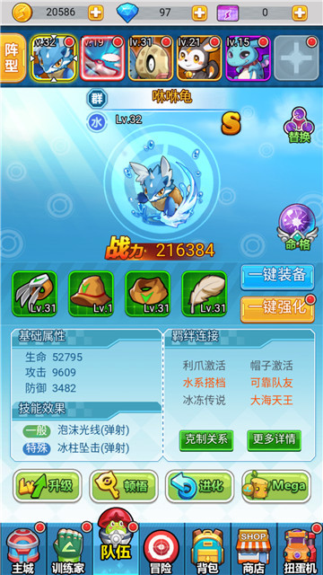 各种全新的玩法,原汁原味的儿时回忆,体验一个最真切的小精灵世界。同时,在精灵养成方面,也有很好的还原,玩家需要通过捕捉或者扭蛋来收复宠物,然后对宠物进行升级、顿悟、进化、Mega等多维度的养成方式,打造属于自己最强的小精灵。