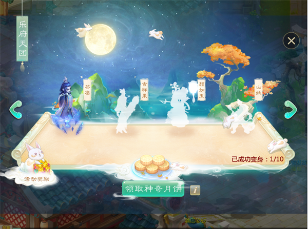 在“神奇月饼”活动中,御膳房为三界侠士们精心制作了中秋新款月饼,不但美味无比,而且还有神奇的功效!等级≥35级及以上的玩家可以单人参与该玩法,每人每天可以领取5个月饼,将获得的月饼赠送给其他任意玩家,双方均可变身(神奇月饼变身状态中不可再次变身)!玩家根据变身造型完成相应的任务后,就能激活领取经验、高级五灵珠、伙伴修炼册、月华积分等隐藏奖励!