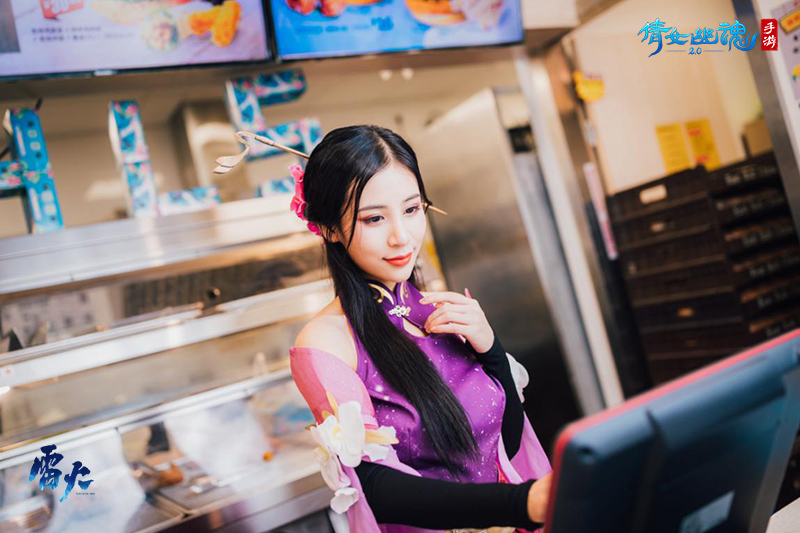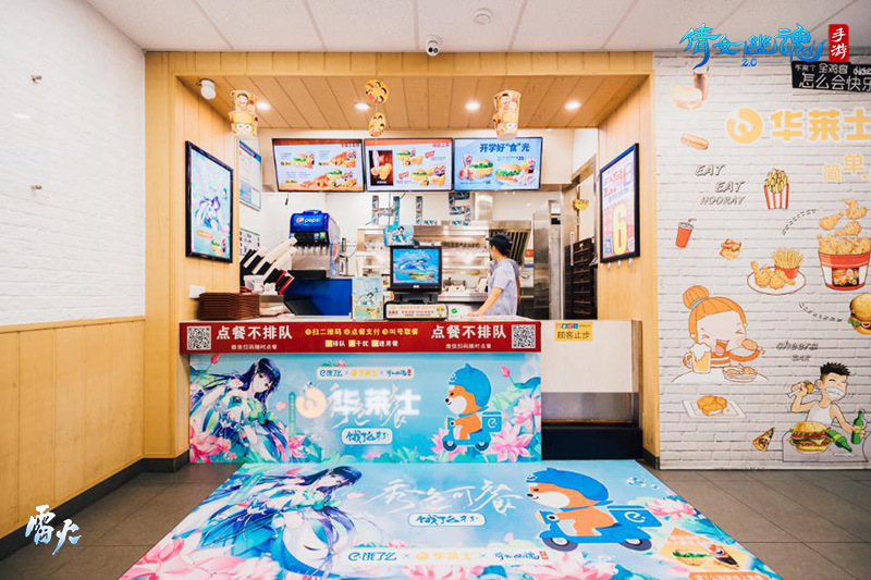 劝君速吃莫踌躇,看被南风吹作竹。线上美食享不停,线下还有倩女手游华莱士主题店等你来玩!这里不仅是帮派聚会、好友面基的好去处,也欢迎各位侠侣们来此共度美好时光。店内外贴满倩女主题玻璃贴、海报,彰显独特倩女风味。