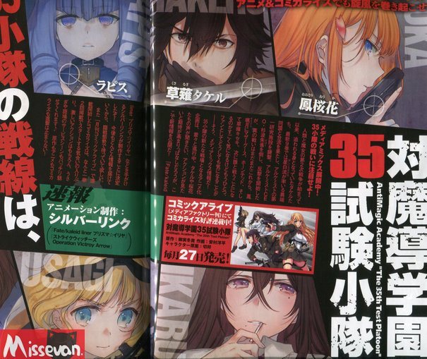 由柳实冬贵原作、切符负责插画,并由日本富士见Fantasia文库发行的轻小说「对魔导学园35试验小队」,在此前宣布动画化的消息后,如今又迎来了后续情报。据悉,该作的动画将会由已经在今年接下了「百合熊岚」、「悠哉日常大王 2期」等作品的“SILVER LINK.”担当制作要务。