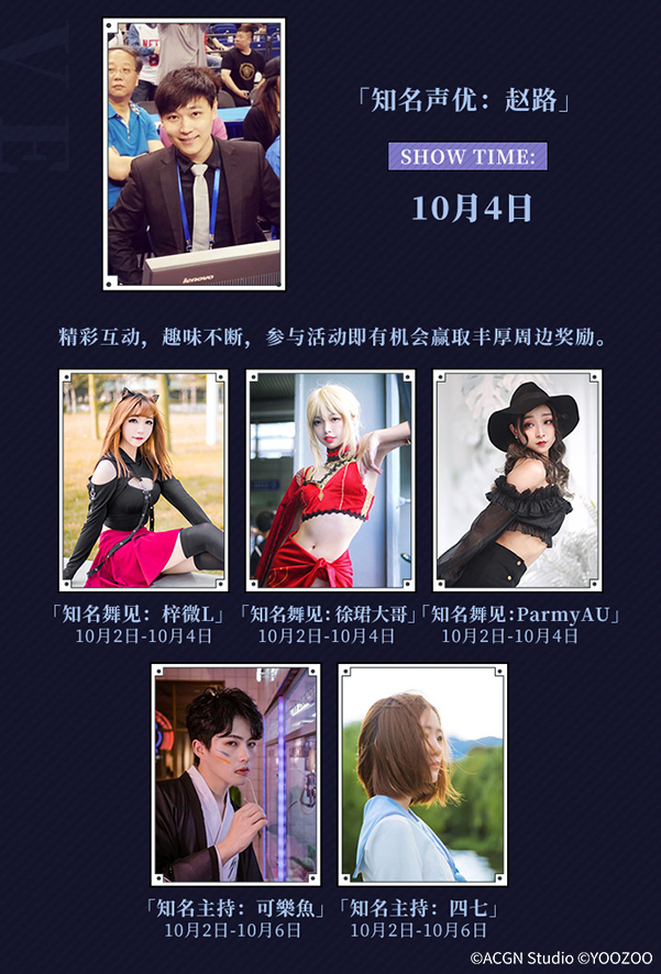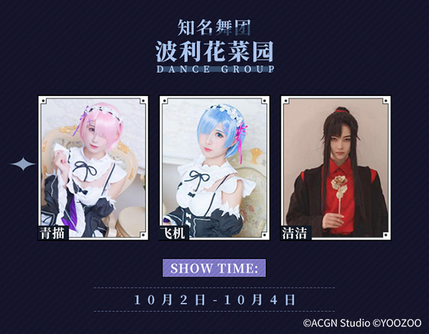 广州CICF展台重磅不停,知名舞见ParmyAU、徐珺大哥,以及国内知名舞团波利花菜园都将于10月2日-4日亲临现场,为现场玩家献上最精彩动人的舞台表演,更有附赠精美奖品的互动环节不容错过。