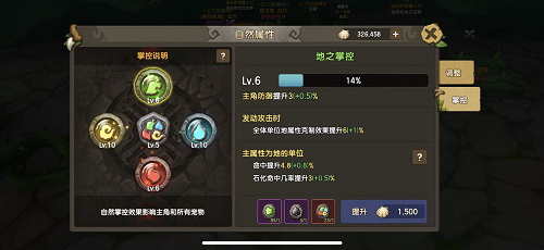 当我们拥有掌控自然的资格后,你就要不断的熟悉掌控自然的规则,去升级我们掌控自然的能力。当我们不断的熟悉自然元素,都能对自然元素理解的更加深刻,强化我们属性克制的能力,面对属性克制时能够打出更多的伤害;同时每个自然属性都有不同特性。比如升级地属性时,就能增强自身的防御力,这是因为大地厚重承载万物;再比如火属性,凶猛热烈,升级能够增强自己的攻击力……