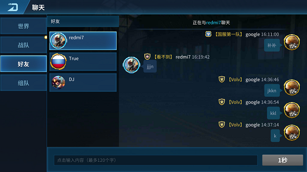 当有未读的好友信息时,好友分页按钮和对应好友头像上都会显示红点角标,提示玩家及时点击查看。好友频道发言次数不限,发言间隔时间5秒, 单次发送文字的上限为120个字。