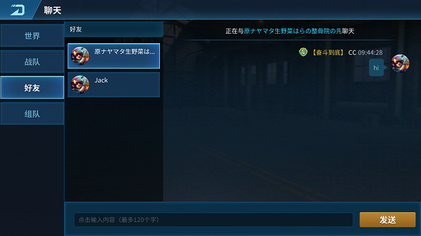 当你拥有好友后,就可以在好友频道,在好友列表中选择想要聊天的好友,点击好友头像即可切换当前聊天的好友。同时在右边聊天框的顶端也会显示当前聊天的好友昵称,防止玩家选错好友说错话呢,是一个非常贴心的提示。