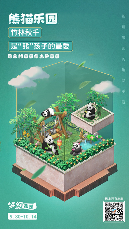 明天就要放假啦!为迎十一,《梦幻家园》推出安卓版特供皮肤——熊猫乐园。和熊猫一起嬉戏,想想就很快落!一起来收集竹子,投喂熊猫,打造专属熊猫乐园吧!