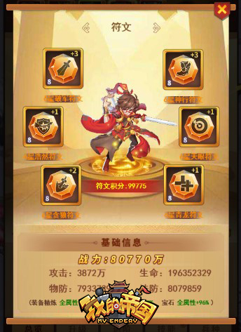 在许多古老神话和电视剧中,传说有一种神秘符文,上面刻着具有独特意义的图腾,凡是佩戴者都能从符文里获得强大的力量。而在《我的帝国》里,也有这么一个符文系统,主公可以通过佩戴、升级、进阶符文等操作,获得无比强大的“洪荒之力”,使自己武将的战斗力得到巨大提升。