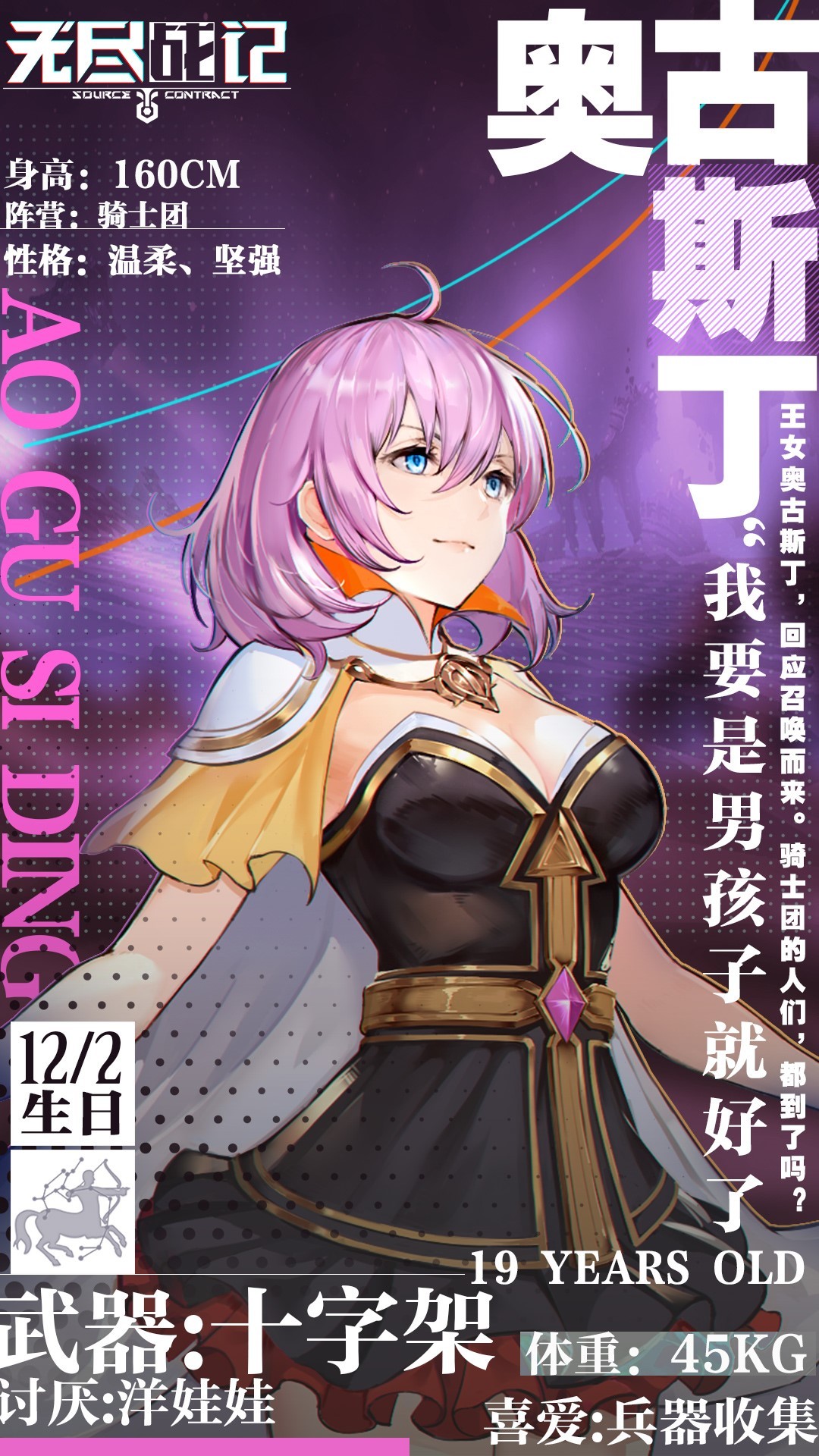 她,出身名门 却惨遭亲生父亲的追杀至今 她温柔、坚强 女儿身、男儿心 喜欢收集兵器,讨厌洋娃娃 她是一个假小子 通过自己的努力,最终获得了骑士团的效忠 王女奥古斯丁,回应召唤而来。骑士团的人们,都到..