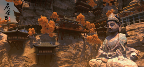 而视频最后的地方又是另一番景致。玄空寺被誉为修士之宗,位于北齐以北的苦寒之地,地处偏远且环境恶劣。一方面受地势限制,另一方面出于对苦修的追求,这里的建筑大多依附峭壁之上,巨大的石刻佛像静坐在巍峨险峰间,四周崖壁上的建筑却如同悬挂在半空一般。此等条件下,门人无不练就极坚心智、极强体魄,武林人士亦皆待玄空寺以天下正宗之礼。