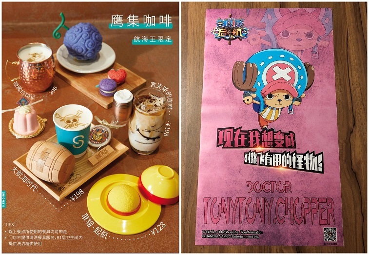 今年11月底,全国首家由官方授权的“航海王咖啡快闪店”空降上海,店内充满了《航海王》主题装饰和各式主题美食,还有各种OP限量独家正版周边售卖。最有特色的是,菜单上的主题美食餐具也充满了浓浓的《航海王》风情,客人购买美食后,可将附赠餐具带走留作纪念。在开业后近一个月的时间里,这种独特的体验吸引了不少海米前往快闪店打卡。