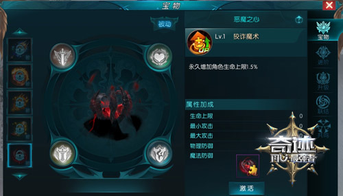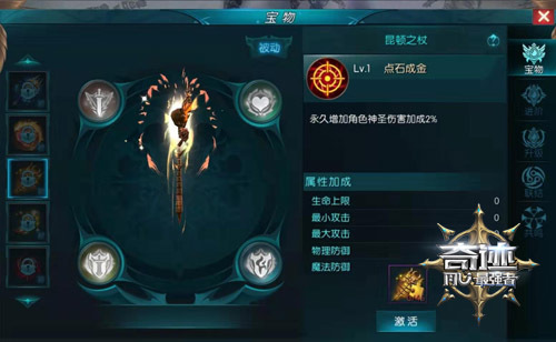 《奇迹:最强者》四件宝物同时上线的盛况不多见,虽然都是被动系不可出战,没有外显技能,但只要激活多个被动宝物,就可给主人附加多重永久属性。战无止境,渴望成功的勇士,抓紧收集吧!
