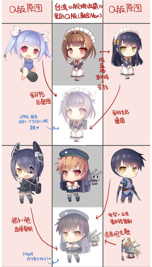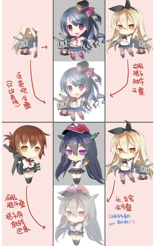 但是游戏中的语音却是全日文的,以至于连日本网友都要吐槽“一个长着亚洲脸说着日文的舰娘你告诉我她是美国的,你逗我?”,当然游戏中也有一些原创的舰娘就是了,至于战斗画面依旧是艦これ的战斗画面改版而已,总的来说这款台湾的山寨游戏真是集成了舰娘国服的脸皮和战舰少女的运营方式,也算是最近舰娘山寨游戏的集大成者。下面附上Q版各种花式拼接,山寨滴都应该是这样子来拼接成的吧。