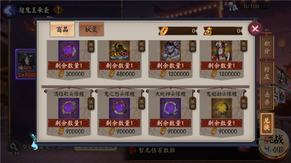 阴阳师们可使用击杀首领获得的战功在战功商店兑换超值奖励,更有随机SSR/SP式神召唤券、冥界之主头像框、酒狂歌头像框、鬼之怒头像框、大蛇神头像框、鬼船劫头像框、白狼皮肤·箭羽凌风、猫掌柜皮肤·金铃青衫等稀有奖励!