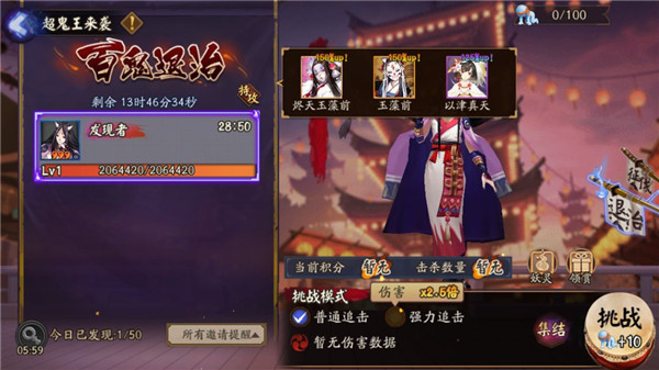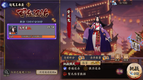 阴阳师们可选择单人挑战,或集结好友、寮友一起挑战。战斗结束后,将根据对百鬼首领造成的伤害及百鬼首领的等级和星级获取积分和战功。