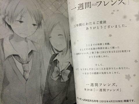 并且,对于多多少少注视着两人的你,我们将怀着一直以来的感谢之情,为你献上第39话《一周的朋友》。这一话将在《GANGAN JOKER》5月号(2015年4月22日发售)上进行连载。”