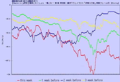 舰娘第三话是在日本时间1月22日凌晨1点5分开播,在开播后舰娘的BD第一卷销量排名跌入了谷底134位,这是舰娘BD开订以来最糟糕的排名位置,而在动画播出结束后的两个小时舰娘BD销量排名几乎是以垂直的方式上升,在凌晨5点进入了亚马逊BD销量榜第89位,看来如月之死的神展开确实对于BD销量有拉升作用。看着设数据犹如在玩过山车一般的刺激!