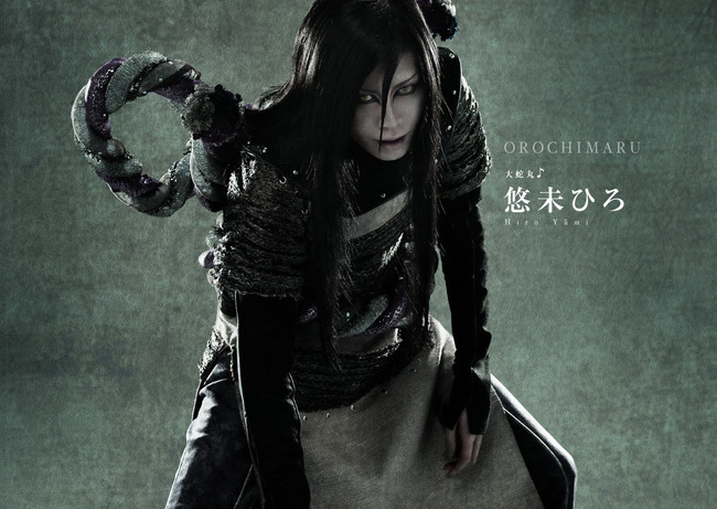 今日,《火影忍者》舞台剧官方再次曝出了新的配角定妆照,大蛇丸、自来也、药师兜,在这里实在不得不佩服日本的化妆术和演员质素,完全将《火影忍者》漫画中的二次元人物还原到了三次元中来。