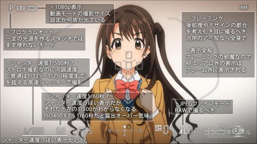接下来说说的是「偶像大师灰姑娘」第二话中出现的摄影问题,第二话中灰姑娘计划的全员集合在摄影棚拍摄介绍写真,动画中出现了相机拍照时的界面,结果被日本考据党指出相机的拍照设定存在以下问题,这些考据党真是闲的没事干啊!!!下面看看是那些问题吧。