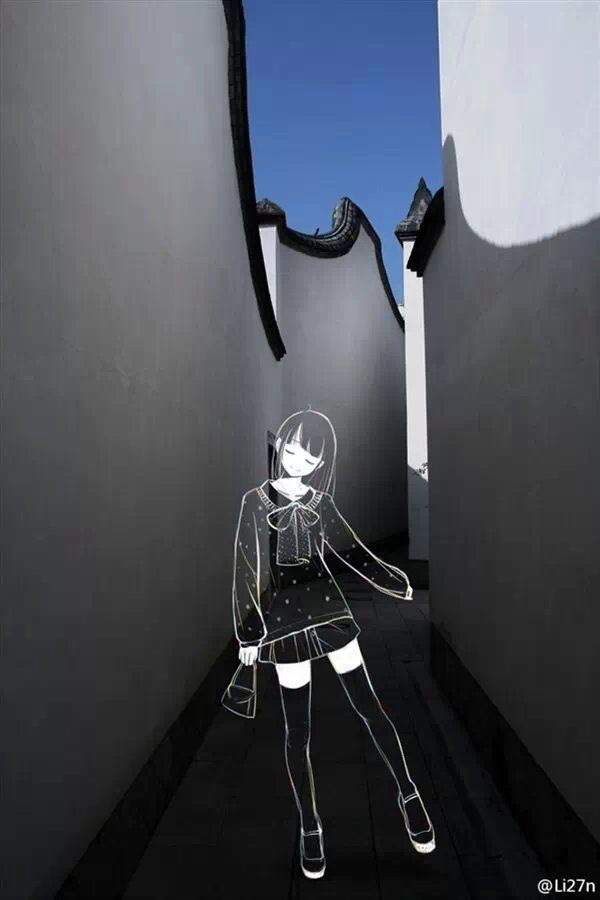 阿宅带2次元”女友“游山玩水