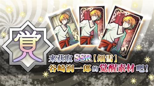 【细雪】谷崎润一郎的觉醒活动和SSR【细雪】谷崎润一郎的限时概率UP扭蛋都将于近期开启。相信大家对于角色觉醒的流程也都比较熟悉啦——通关活动副本积攒觉醒素材,就可以将SSR卡升级成UR卡!