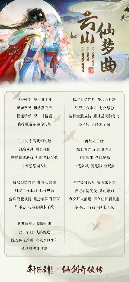 《云山仙梦曲》由忠实玩家、音乐人月吟诗创作,知名古风歌手心然、醉雪演唱。