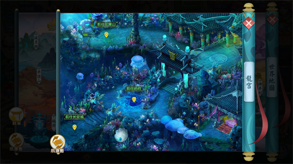 龙宫是的整体色调是深蓝色的,给人一种非常幽静的感觉,尤其是在夏天,这样的地图看起来就非常凉爽。在游戏目前开放的地图中,我们还不能进入龙宫内部,但即使只是外围的小道,细节已经非常丰富了。各种各样的珊瑚群、海水中翩翩起舞的水母、还有珍珠和巨蚌……海底的风景并不像现实中那样一篇黑暗,它幽静深邃,同时也有自己的美丽。