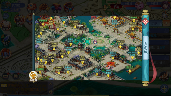 如果说前几幅地图更多的是在展示西游世界中的自然风光,长安城则更加倾向于为我们展示游戏中的人文风貌。繁华的长安城有各种社会名人出没,我们接取活动任务大多需要他们的帮助。还有各种商贩小摊遍布在街道两侧,为这座庄严的城市增添了不少生活气息。
