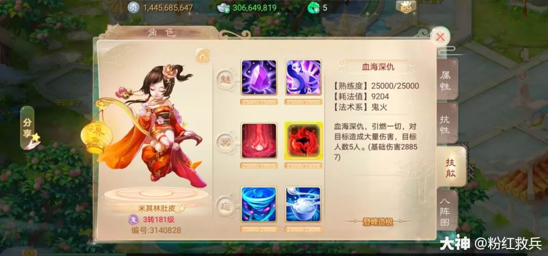 要了解女鬼,咱们得先来看看女鬼的法术面板!