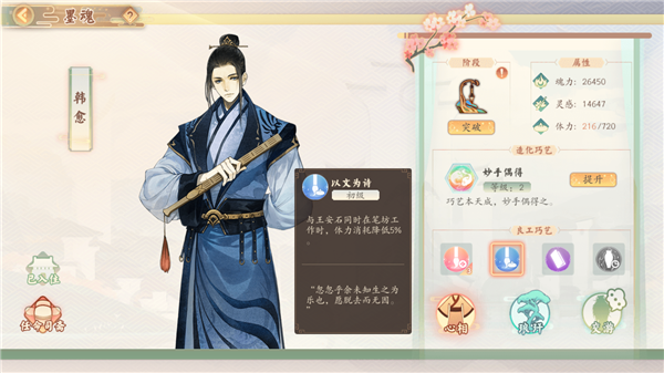 5.良工巧艺分为两类:一类可以通过蕴养琅玕花玉得到提升,另一类在墨魂突破到对应境界时可进行一次自动提升;