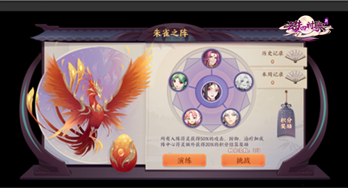 另外特别要提醒的是,本周朱雀阵开启期间,背明鸟为阵中心符灵!使用背明鸟上阵可在积分结算时获得20%的积分加成!各位大人一定不要错过哦~