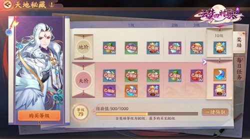 洞天福地,秘藏现世!新版本还增加了“天地秘藏”这一福利回馈,玩家在活动时间内到达10级即可开启天地秘藏。奖励分为地阶奖励和天阶奖励。地阶秘藏的奖励无需解锁,达到相应等级后可领取奖励。天阶秘藏的奖励需要在藏宝阁购买秘籍后才能解锁奖励,达到相应等级后可领取奖励!在秘藏奖励中包含体力、高级星耀、绢帛等游戏内重要资源,在完成每日任务后均可轻松获得,更有新版本中的重要材料“炼星石”等你来拿!