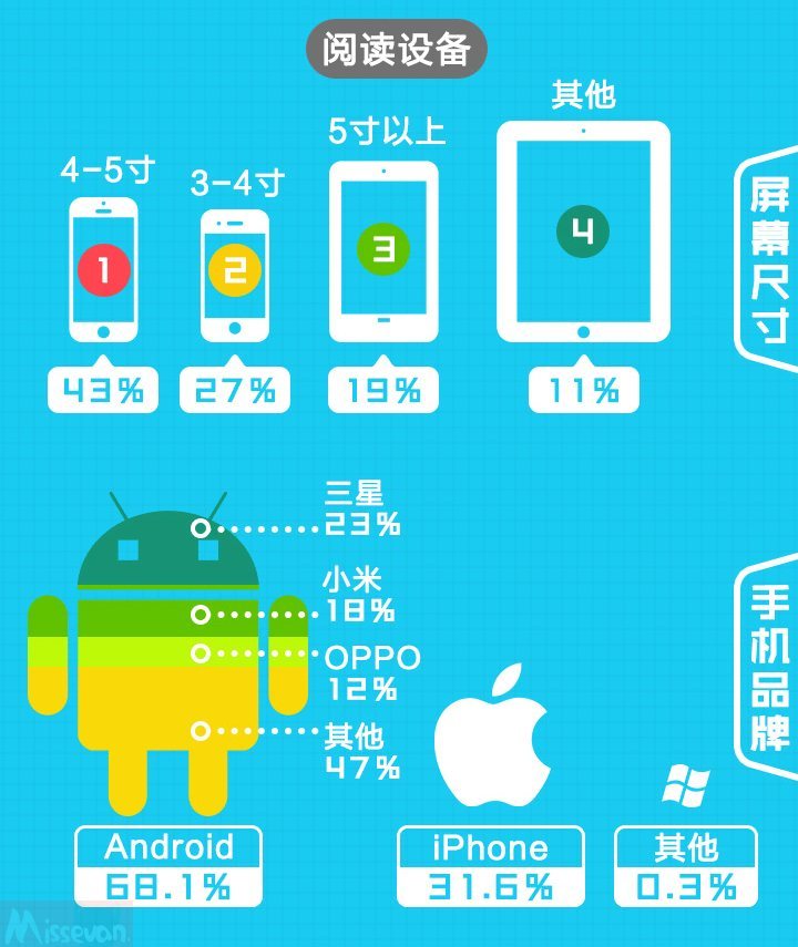 本次调查中,二次元族群的阅读设备安卓手机占比68.1%,iOS占比31.6%。有七成的用户选择使用屏幕在五寸以下的设备,这也是跟主流群体为学生族群有很大关联。