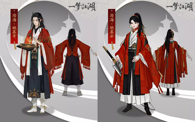 沧海门派的姚慕奇师兄和胡慕冰师姐也进行过深度的私人订制造型。别看姚慕奇师兄平时不修边幅,邋里邋遢。一番改造后,戴着金丝眼镜,耳畔别一杆笔,一看就知道此人并不简单……而沧海弟子们公认的大姐姐胡慕冰,造型也显得更加英气:马尾高束,身着具有沧海特色的专属衣衫,手里拿着一把十分有震慑力的大刀,不愧是英姿飒爽的沧海师姐。