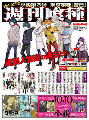「东京食尸鬼」小说「昔日」描述角色们过去的物语。代号兔子的食种混在人类中到学校上学的过程、暴食狂的战斗、CCG才女的学生时代、兄恶的食种魔猿的过去。以及目前失踪的关键大学生孤独的日常。