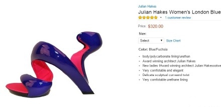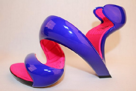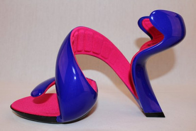 《东京食尸鬼》的变态月山赫子烤面筋高跟鞋,这款中空的鞋子看上去很抽象,如同画家即兴画出的线条,流畅跳脱却一副只能远观不可亵玩的样子,但是由于在制材方面选择了高强度、高弹性的碳素纤维构成鞋体支架,再以橡胶、皮革制成鞋身及部分触底位置,所以这双赢得大奖的高跟鞋比想象中穿着要稳当。