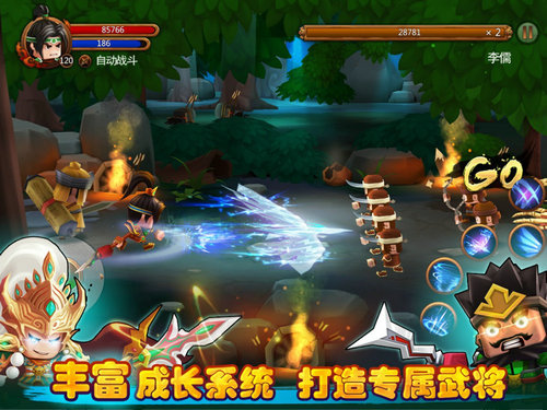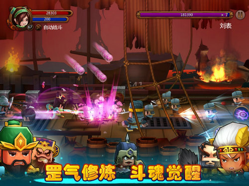所有出场的三国人物均以Q版卡通形象设计,搞笑诙谐,大家一起与呆萌的敌将展开大决战吧!搞怪刘皇叔,心系天下,却放不下自己的草鞋生意。好胜关二哥,事无巨细,定要争第一。莽撞张三爷,勇字当头,无人能挡。。。。。。更多搞笑角色,尽在《乱打三国》。