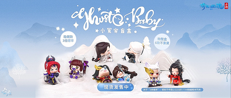 本届【倩意年货节】除了精美超值的新春台历礼盒,还有不少热门周边将在游戏商城上架:由倩女手游与文和友臭豆腐博物馆推出的联名款阿乌娃娃首次出售,头戴小龙虾头套的阿乌造型呆萌可爱,限量出售50只不可错过;备受三界玩家喜爱的【小冤家盲盒】再次上线,6款普通角色不重复,2款隐藏拥有超高爆率。进入周边商商城的玩家需使用手机客户端,快把你喜爱的角色周边带回家吧!