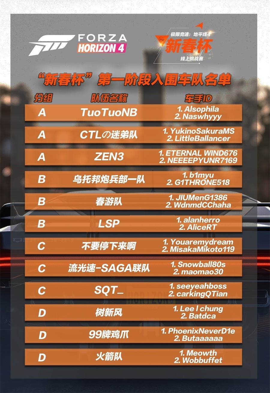 随着《极限竞速:地平线4》新春杯第一阶段进入决赛阶段,这一赛事也已经渐入佳境。无论你是有志于要参与这一赛事的赛车手,还是喜爱见证高手过招的车迷,都可以关注这一赛事,了解不同车队的风格和喜好,与无数玩家一同见证新春杯总冠军的诞生!