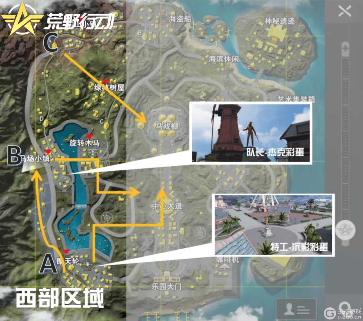 西部区域中部地区看似宁静的休闲地带也暗藏着危机。摩天轮是狙击手的绝佳埋伏点,要时刻警惕周围的作战环境;而马戏棚处于地图中心地带,优越的地理位置与丰富的物资成为玩家们的必争之地,战况往往紧张而激烈。